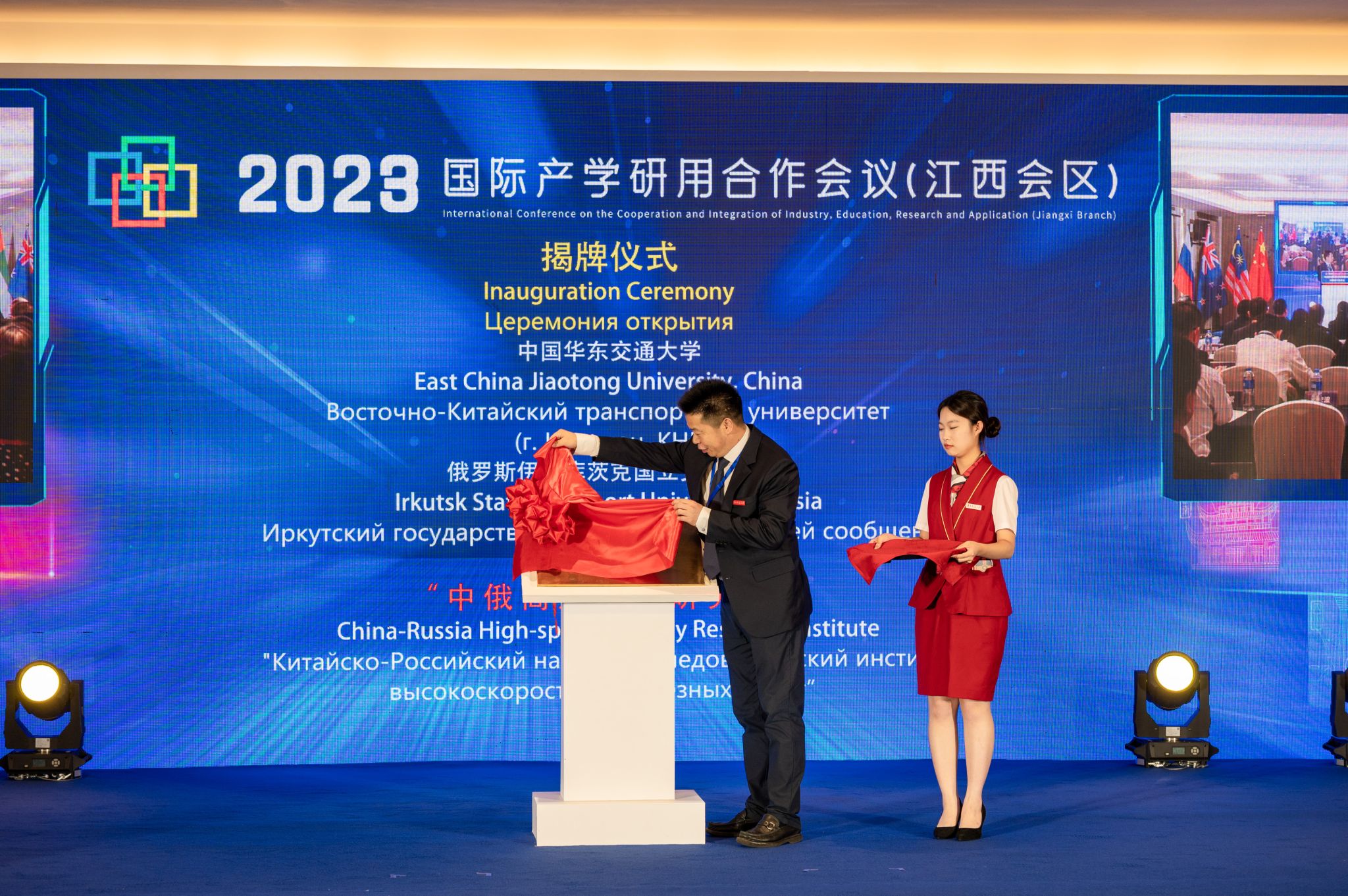 徐长节为raybet官网首页与俄罗斯伊尔库茨克国立交通大学中俄高速铁路研究院揭牌。